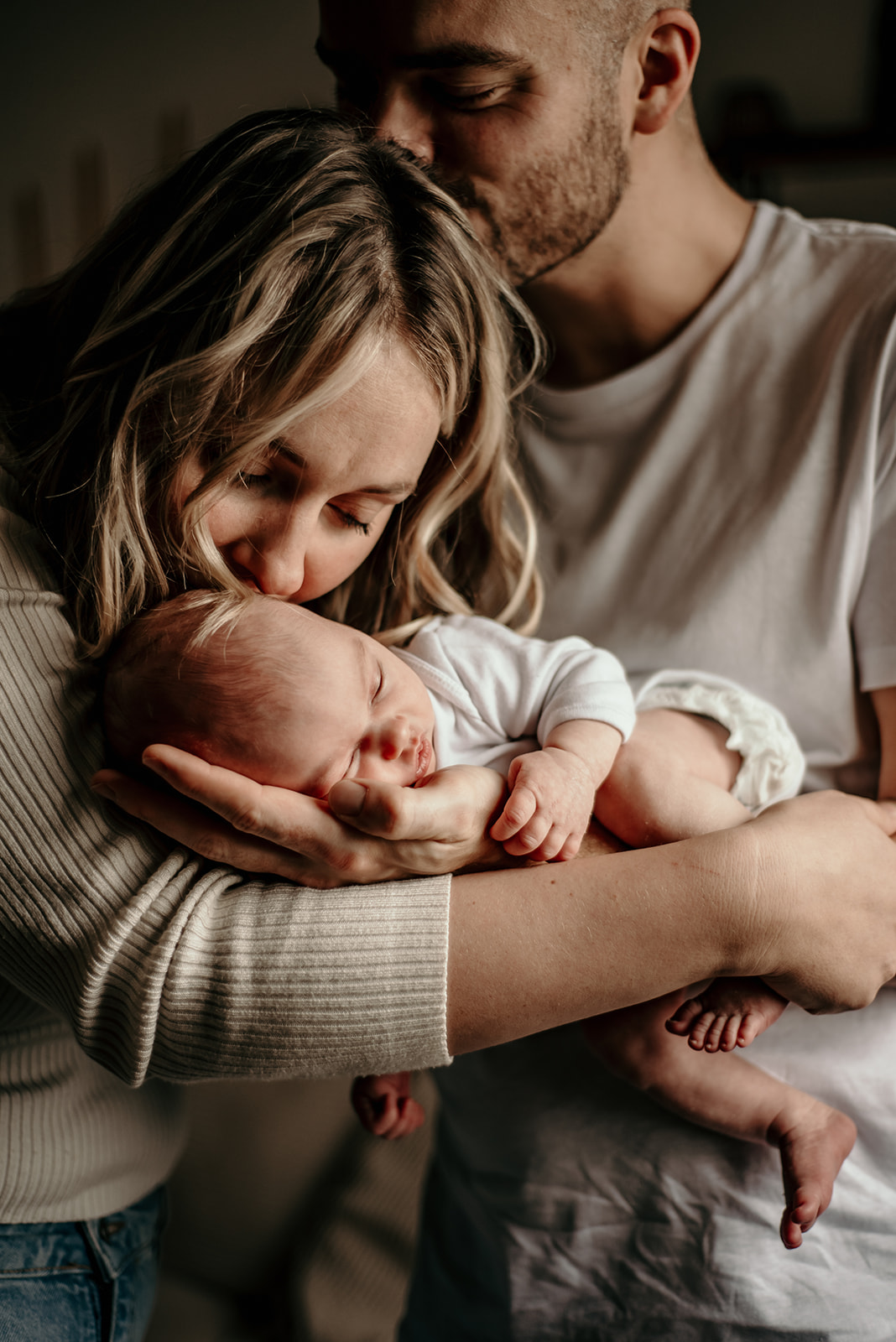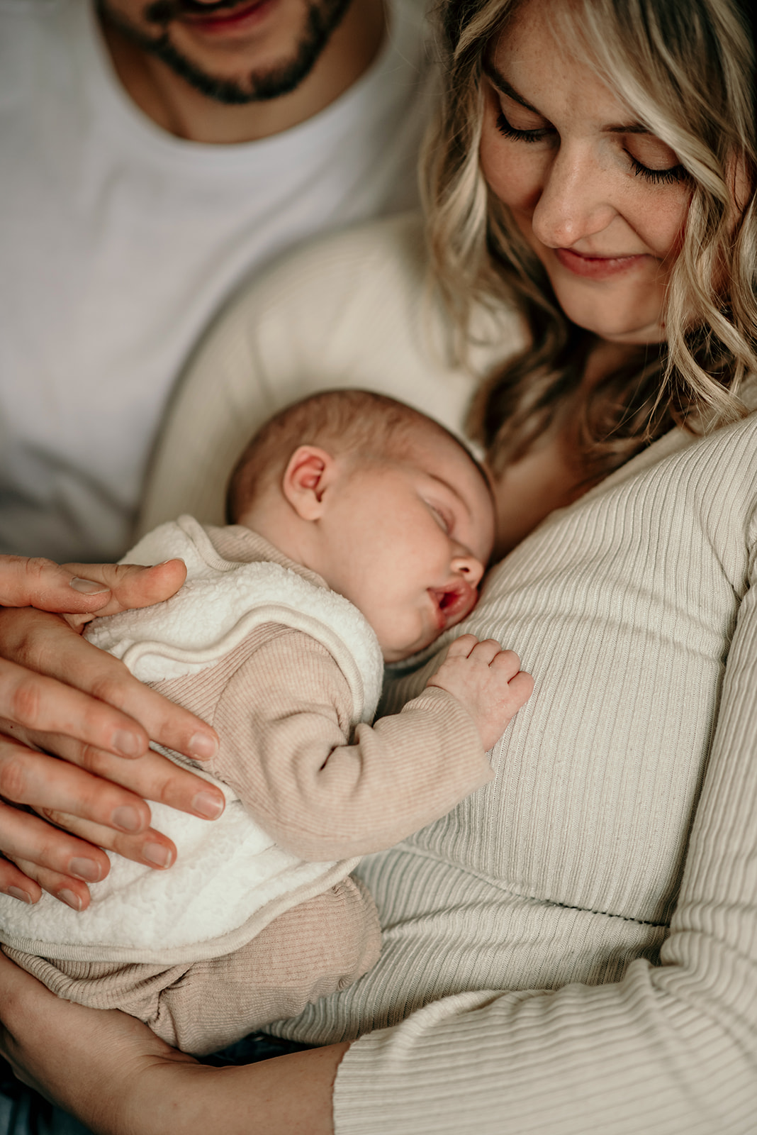 Genau das macht diese Aufnahmen so besonders: kein Druck, kein „Perfekt-sein“. Nur Nähe, Vertrauen und ganz viel Herz. Entstanden sind Bilder, die zeigen, wie wunderschön die ersten gemeinsamen Tage mit einem Neugeborenen sind – voller Geborgenheit und echtem Leben. Danke ihr drei, dass ich das festhalten durfte!