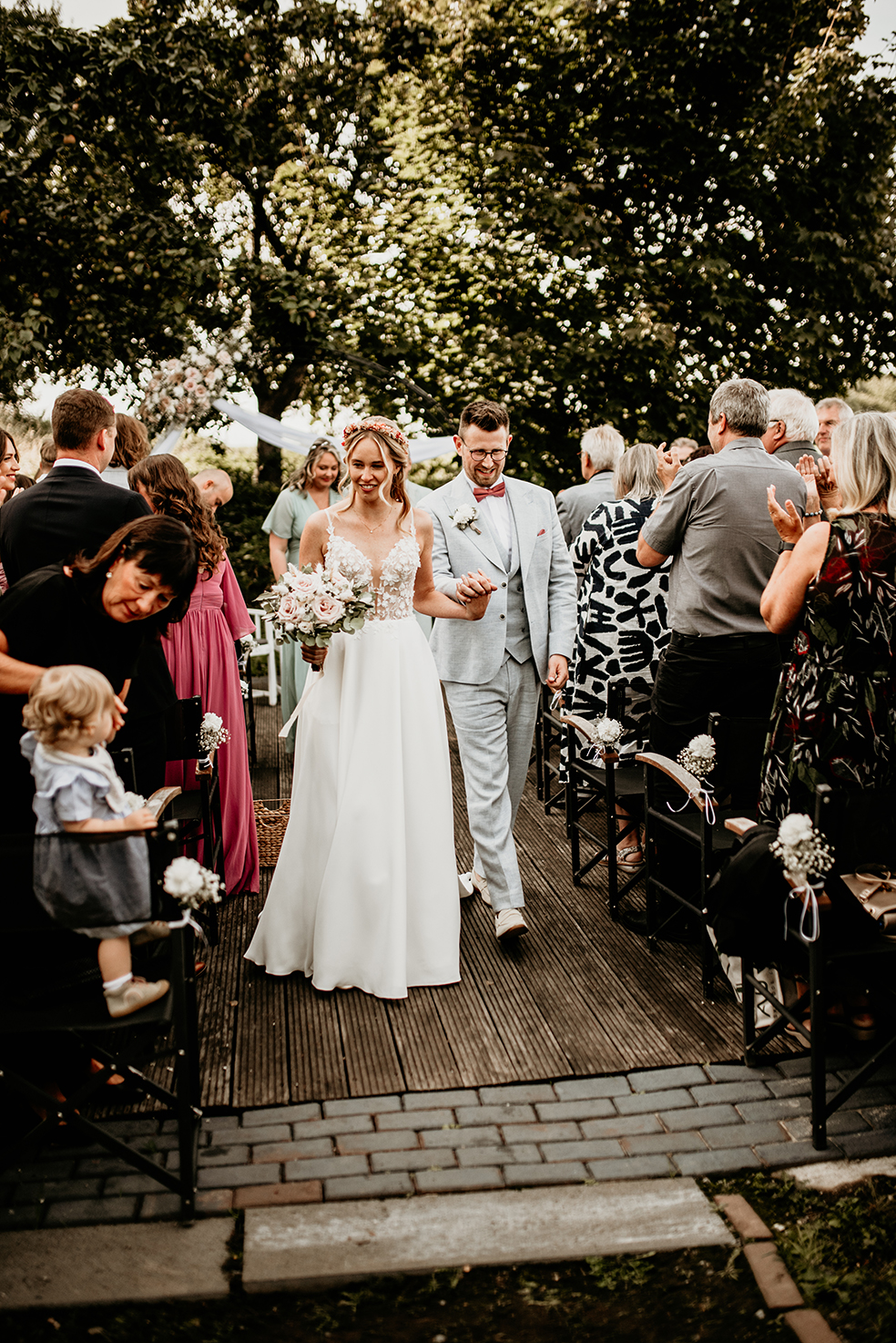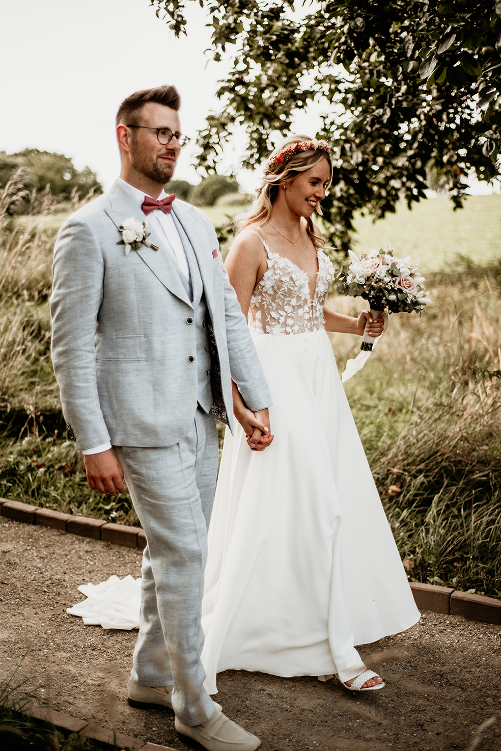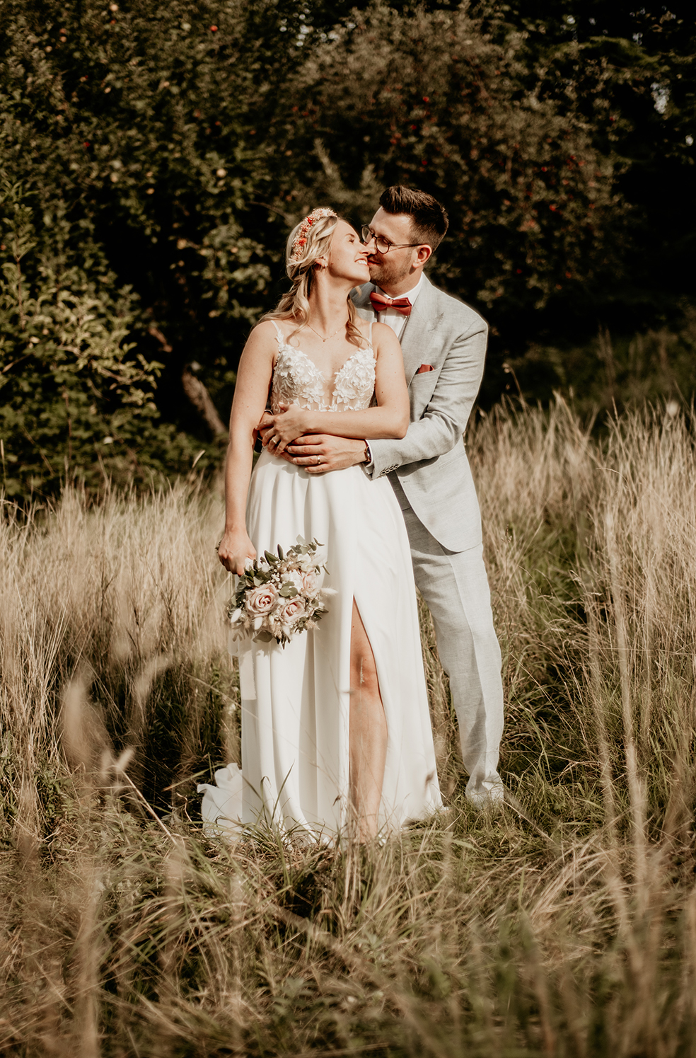 Was für ein wundervoller Tag mit Vivian und Phillip! Bei wirklich allerschönstem Spätsommer-Wetter heirateten die beiden auf Gut Knittkuhle in Düsseldorf in einer freien Trauung unter Apfelbäumen. Die Stimmung am ganzen Tag war so gelöst, lustig und locker, da hat jedes Foto einfach Freude bereitet. Nicht nur während der wundervollen Traurede von Daniela Krämer wurden alle Emotionen geweckt, auch beim Pärchenshooting im Anschluss haben die beiden gezeigt, wie groß ihre Liebe zueinander ist. Am Abend konnten wir das schöne „golden-hour“-Licht ausnutzen und ein paar Bilder im Sonnenuntergang machen. Ein rundum gelungener Tag! Danke ihr beiden, ich hatte ganz viel Spaß!