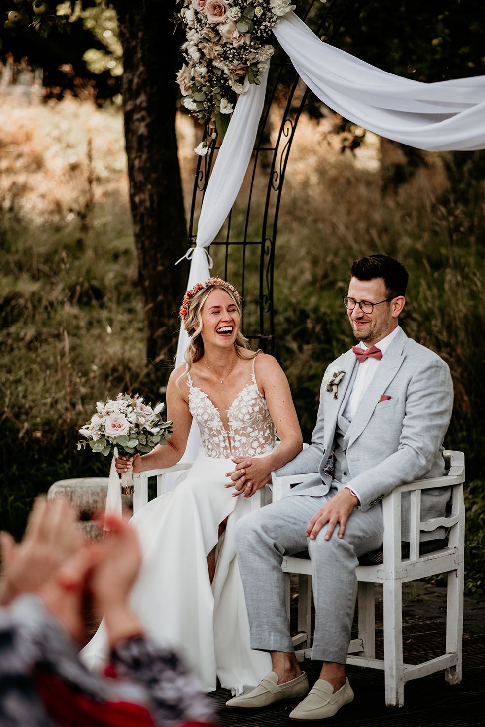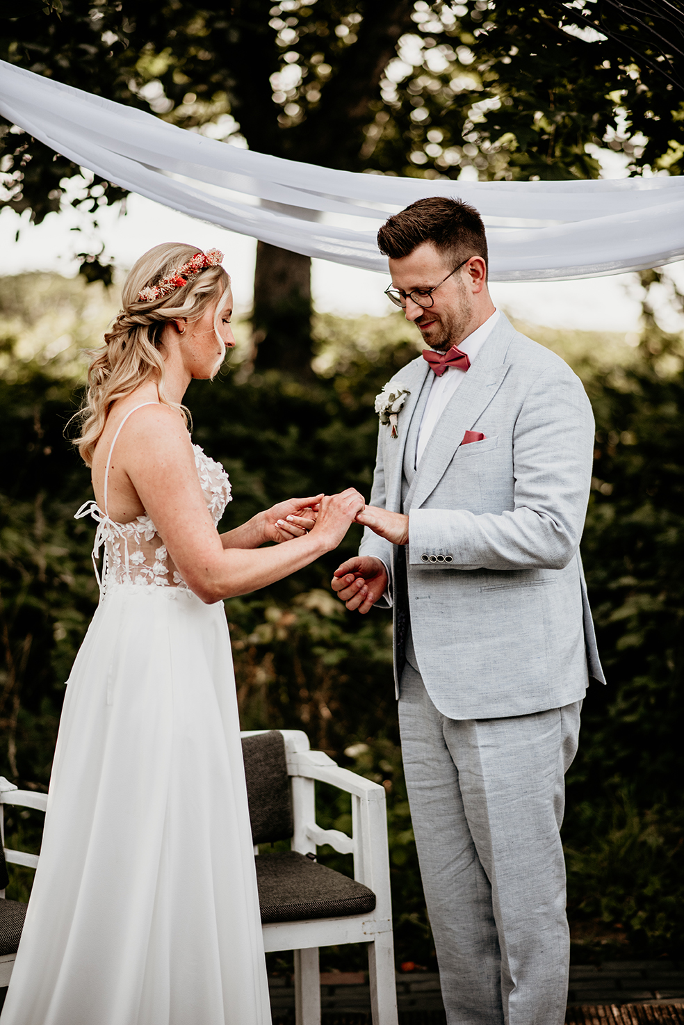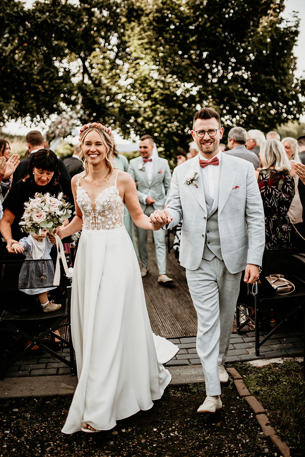 Was für ein wundervoller Tag mit Vivian und Phillip! Bei wirklich allerschönstem Spätsommer-Wetter heirateten die beiden auf Gut Knittkuhle in Düsseldorf in einer freien Trauung unter Apfelbäumen. Die Stimmung am ganzen Tag war so gelöst, lustig und locker, da hat jedes Foto einfach Freude bereitet. Nicht nur während der wundervollen Traurede von Daniela Krämer wurden alle Emotionen geweckt, auch beim Pärchenshooting im Anschluss haben die beiden gezeigt, wie groß ihre Liebe zueinander ist. Am Abend konnten wir das schöne „golden-hour“-Licht ausnutzen und ein paar Bilder im Sonnenuntergang machen. Ein rundum gelungener Tag! Danke ihr beiden, ich hatte ganz viel Spaß!